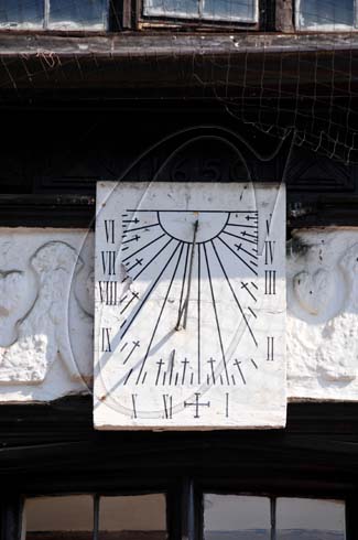 Sundial on timber framed building, High Street, Banbury, Oxfordshire