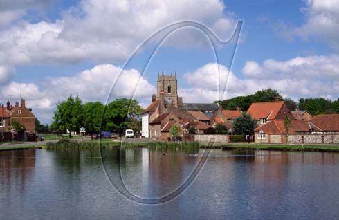 The Village Pond and Church, Great Massingham, Norfolk, East Anglia, England.