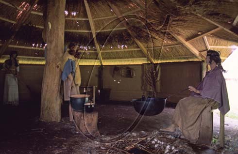 Inside a Hut in the Iceni Village Museum at Cockley Cley, Norfolk, East Anglia, England.