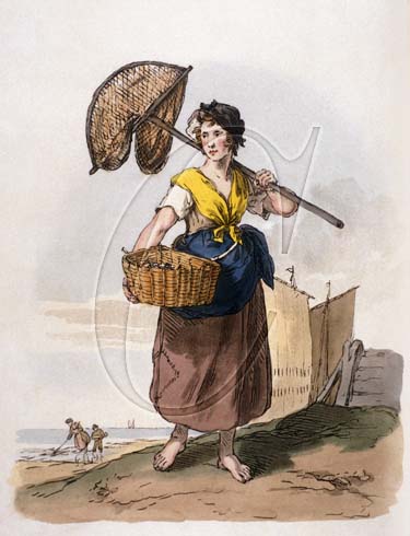 Female shrimper, from ‘Picturesque Representation of the Dress & Manners of the English’, John Murray, London, 1814