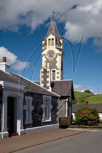 Street and clock tower Moniaive, Dumfries & Galloway, Scotland