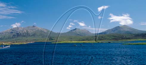RSPB nature reserve at Loch Druidibeag South Uist. In the distance can be seen the hills Hecla, Beinn Choradail and Beinn Mhor.