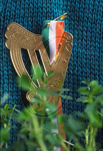 Irish Harp, Shamrock and Tricolour at the St Patrick’s Day Parade, Dublin, Ireland