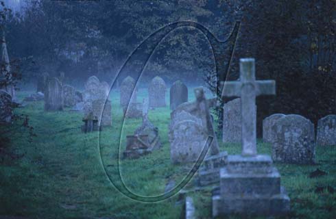 Mist rising among the old gravestones behind St.Mary’s Church in Boxford, Suffolk