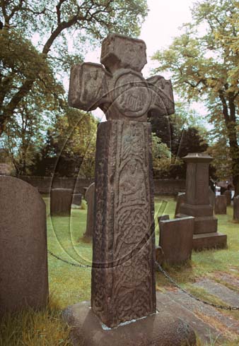 Large decorated Celtic Cross in Eyam Churchyard. Derbyshire