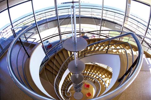 Art Deco spiral steel and stone staircase is a prominent feature of the De La Warr Pavilion Built 1935 and restored in 2005 as an arts centre in the seaside town of Bexhill On Sea in East Sussex