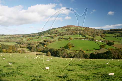 Garway Hill overlooking the River Monnow on the Welsh Border, Herefordshire, England