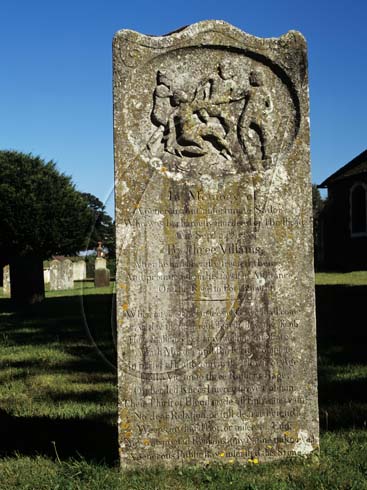 THURSLEY SURREY/September. Headstone in the churchyard of St Michaels and All Angels Church of a sailor killed at Hindhead -his three killers were hanged at Gibbett Hill in September 1786