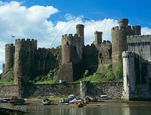 CONWY NORTH WALES/September. Conwy Castle built in the shape of a Welsh Harp the walls are 15ft thick and half a mile in length - it has 8 drum and 21 semi-circular towers