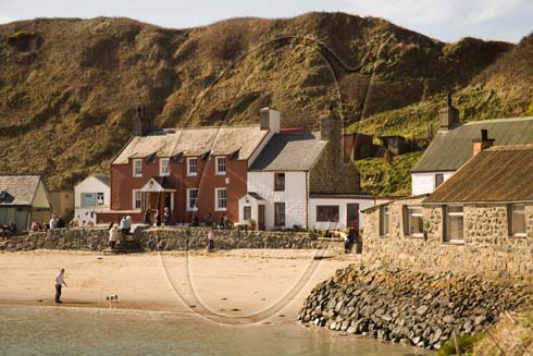 PORTH DINLLAEN GWYNEDD NORTH WALES UK March Looking across the Porth Dinllaen towards Ty Coch Inn, the red coloured public house on the beach of this port at the north end of the Lleyn Peninsula