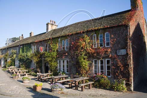 BURNSALL, NORTH YORKSHIRE, UK. The 19th C Red Lion and Manor House Hotel originally a 16thc Ferryman’s Inn at the side of the River Wharfe in this picturesque Village