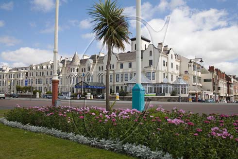 Southport Merseyside England UK July Looking across the flower beds along the promenade towards the Royal Clifton Hotel with its original Victorian facade