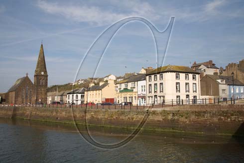 Looking across the harbour to the town with Christ Church prominent, Maryport, Cumbria, April