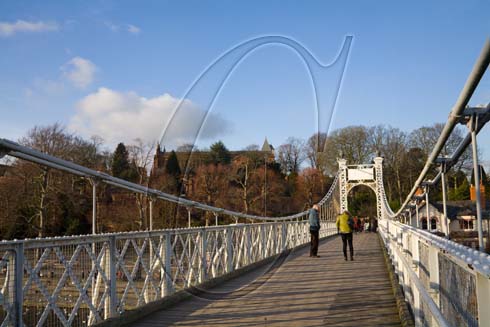 Chester Cheshire View along Queens Park Suspension Bridge over River Dee