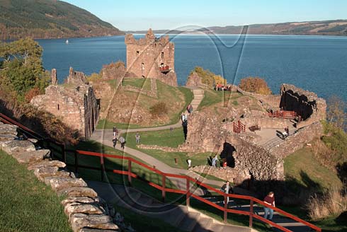 Inverness area. Looking north up Loch Ness over Urquhart Castle, on west bank of Loch Ness.