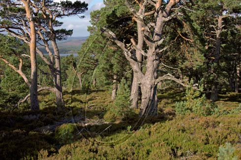 Scot’s Pine, Remnant of ancient Caledonian Forest, Rothiemurchus, Glenmore Forest Park, Aviemore, Cairngorm National Park, Photo taken on Cairn Gorm foothills, near Chairlift and Ski Centre, Loch Morlich to rear, Aviemore, Scottish Highlands, October, 2