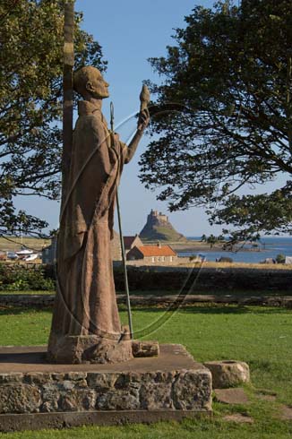 St Aidan, sculpture, figure, Holy Isle, Lindisfarne, Northumberland, Northern England, August 2007