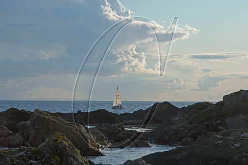 Sailing boat, rocks, off Elie, Neuk of Fife, Fife, Scotland, August, 2008