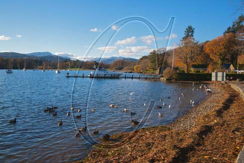Autumn tints beside Windermere, Ambleside, Lake district, Cumbria, England, November, 2010