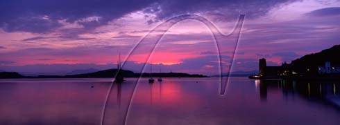SCOTLAND, Scottish Highlands, Oban. The pinks and reds of a west coast sunset, looking towards the western isles and northern Oban.