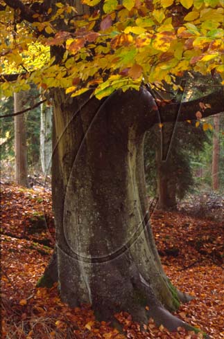 ENGLAND, Northumberland, Rothbury Terraces. The autumn colours of a tree found in a Forestry commission woodland