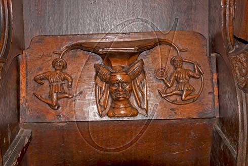 Carved misericord in the choir stalls of St Laurence’s Church, Ludlow, Shropshire