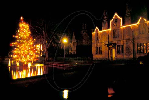 Christmas tree, River Windrush, Bourton on the Water, Gloucestershire, England