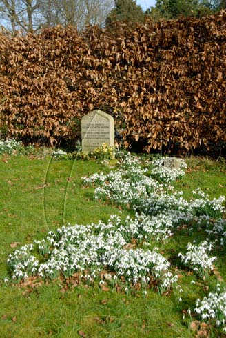 Snowdrops by grave, Colesbourne Park, Colesbourne, Cirencester, Gloucestershire, England