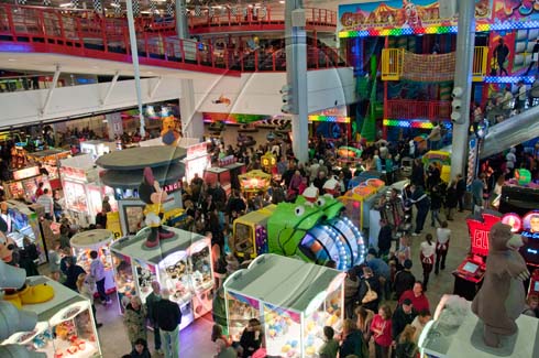 The crowds in the Pavilion at the opening of the rebuilt Grand Pier, Marine Parade, Weston Super Mare, Somerset, England.