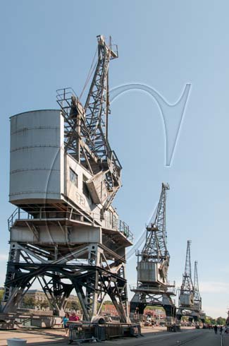 Preserved cranes outside the Bristol industrial museum (Also known as Mshed), Bristol docks, Bristol, South Gloucestershire, England.