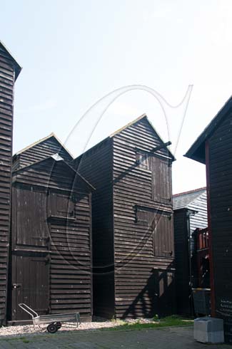 The traditional Hastings net shops where fishermen hang their nets to dry after use. Hastings, East Sussex, England.