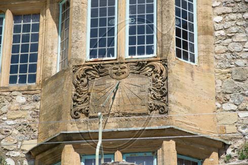 Vertical sun dia on the front of a building, Marine Parade, Lyme Regis, Dorset, England.