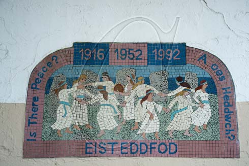 Mosiacs surrounding the base of the ruins of Abersytwyth castle, Aberystwyth, Ceredigion, Wales.