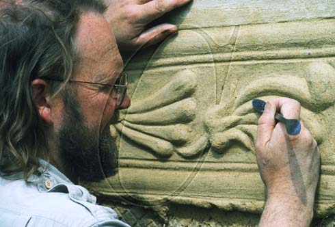 Pargeter Steven Walsh at work on a house in Suffolk (Pargeting is decoration moulded into the external plaster of a building, very prevalent in East Anglia)