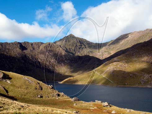 Pen-y-Pass, Gwynedd, Wales. Snowdon and Llyn Llydaw in the Snowdon horseshoe in Snowdonia National Park.