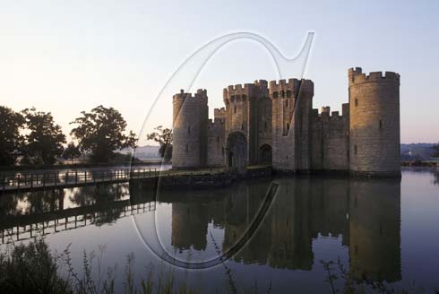 Bodiam Castle, a moated fortress completed in 1385, in The Rother Valley near Robertsbridge, East Sussex