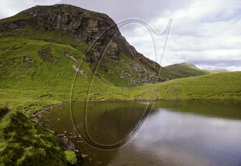 Meall an Fhiodhain above Lochan an Eireannaich at the head of Kirkton Glen in the Trossachs, Stirling, Scotland