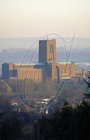 Guildford Cathedral seen from the North Downs in Guildford Surrey