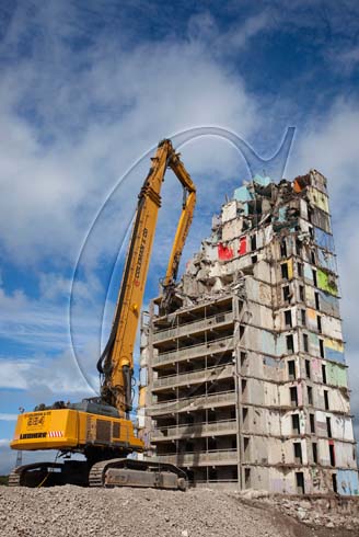 Unoccupied block of apartments being demolished, Govan, Glasgow