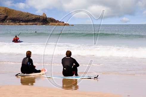 Surfers at Harlyn Bay, near Padstow, Cornwall