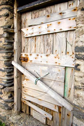 Door, pilchard cellar, harbour, Port Isaac, Cornwall