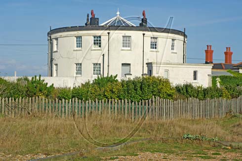 Circular base of Samuel Wyatt’s 1792 lighthouse converted into a house. Dungeness, Kent