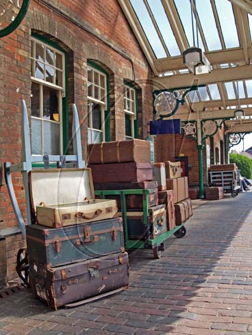 1940s style luggage waiting on the platform at the train station at Sheringham. The line from Holt to Cromer opened on 16th June 1887. Closed By Dr Beeching on 6th April 1964. The 5½ miles from Sheringham to Holt was reopened in 1989.