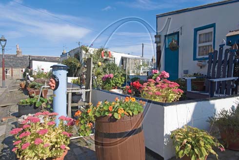 Heritage site of old fishing village of Footdee near the mouth of the River Dee where it enters the North Sea at Aberdeen near a busy modern harbour and now preserved to retain its traditional styles.