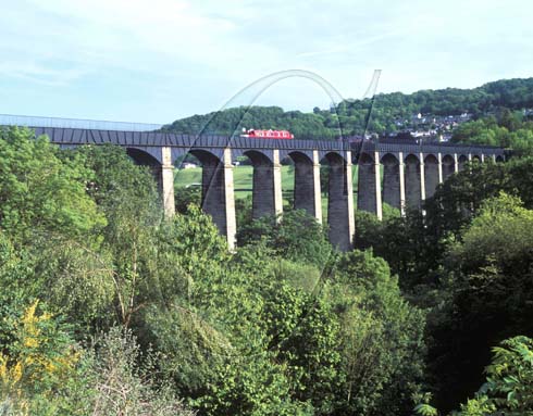 Pontcysyllte Aqueduct, built by Thomas Telford in 1805 to carry the Llangollen Canal over the River Dee near Llangollen, on the border of Denbighshire and Wrexham, North Wales