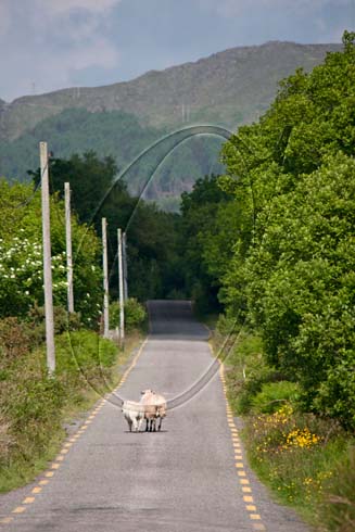 Sheep and lamb on a country road, Killeenleagh, Co. Kerry