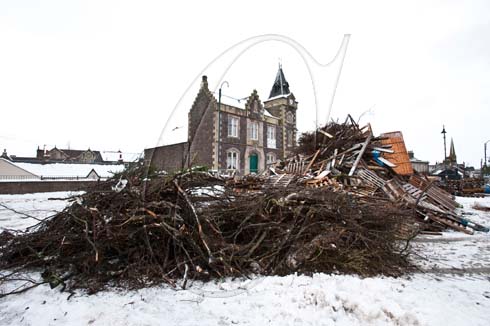 Building the Hogmanay Bonfire in the South Lanarkshire town of Biggar in Scotland, 2009.
